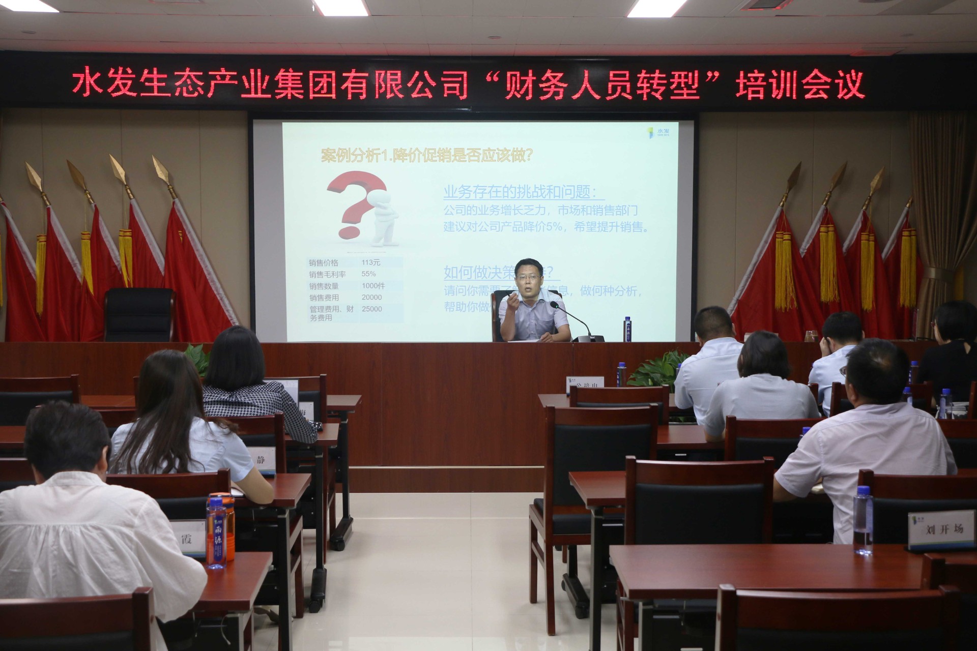 8月25日,水发生态组织召开环保、节能节水设备抵免税收优惠、财务人员转型专题培训会议,集团党委书记、董事长公培山,副总经理于明,集团财务部及各权属公司财务负责人参加本次会议。