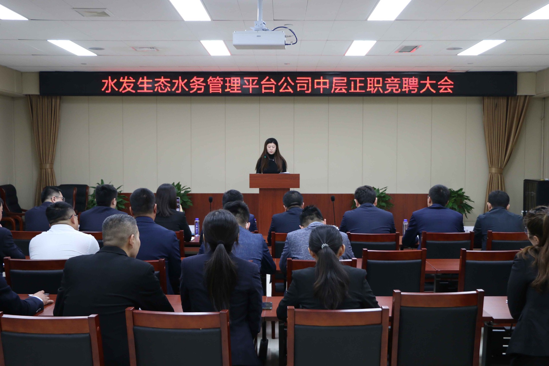 为全面贯彻国企改革三年行动方案,进一步优化水务板块资源配置,提升水务板块市场化、平台化、专业化、规模化水平,并不断优化人员结构,畅通干部能上能下渠道,水发生态组织开展水务管理平台公司中层正职竞聘大会。