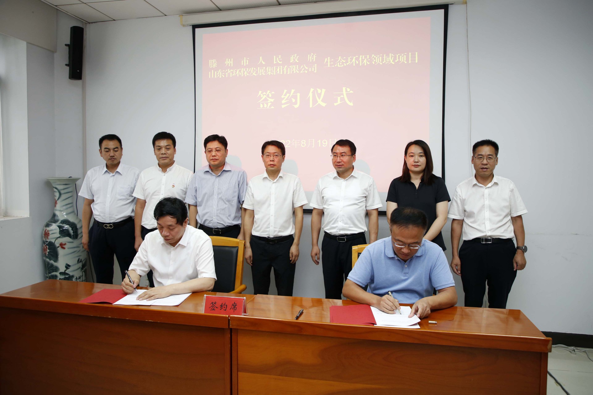 8月19日,山东省环保发展集团有限公司(以下简称“省环保集团”)与滕州市人民政府在滕州签署“战略合作协议”。滕州市委副书记、市长周刚,滕州市经济技术开发区副主任、东沙河镇党委书记马金安,省环保集团党委副书记、副总经理曾繁领,省环保集团党委委员、副总经理,水发生态产业集团有限公司党委书记、董事长公培山等出席本次签约。