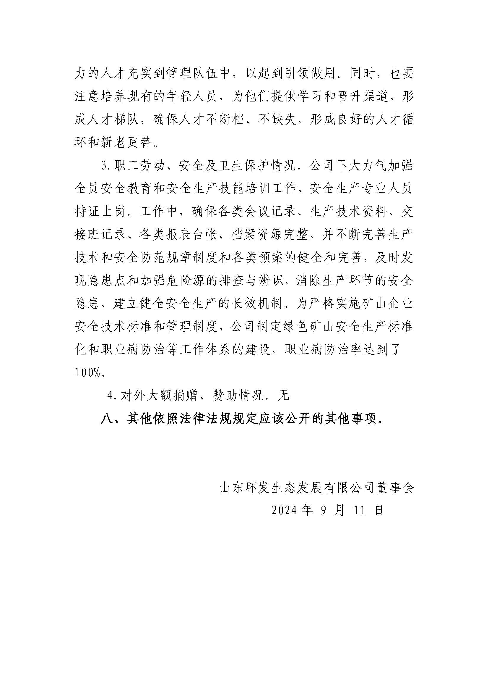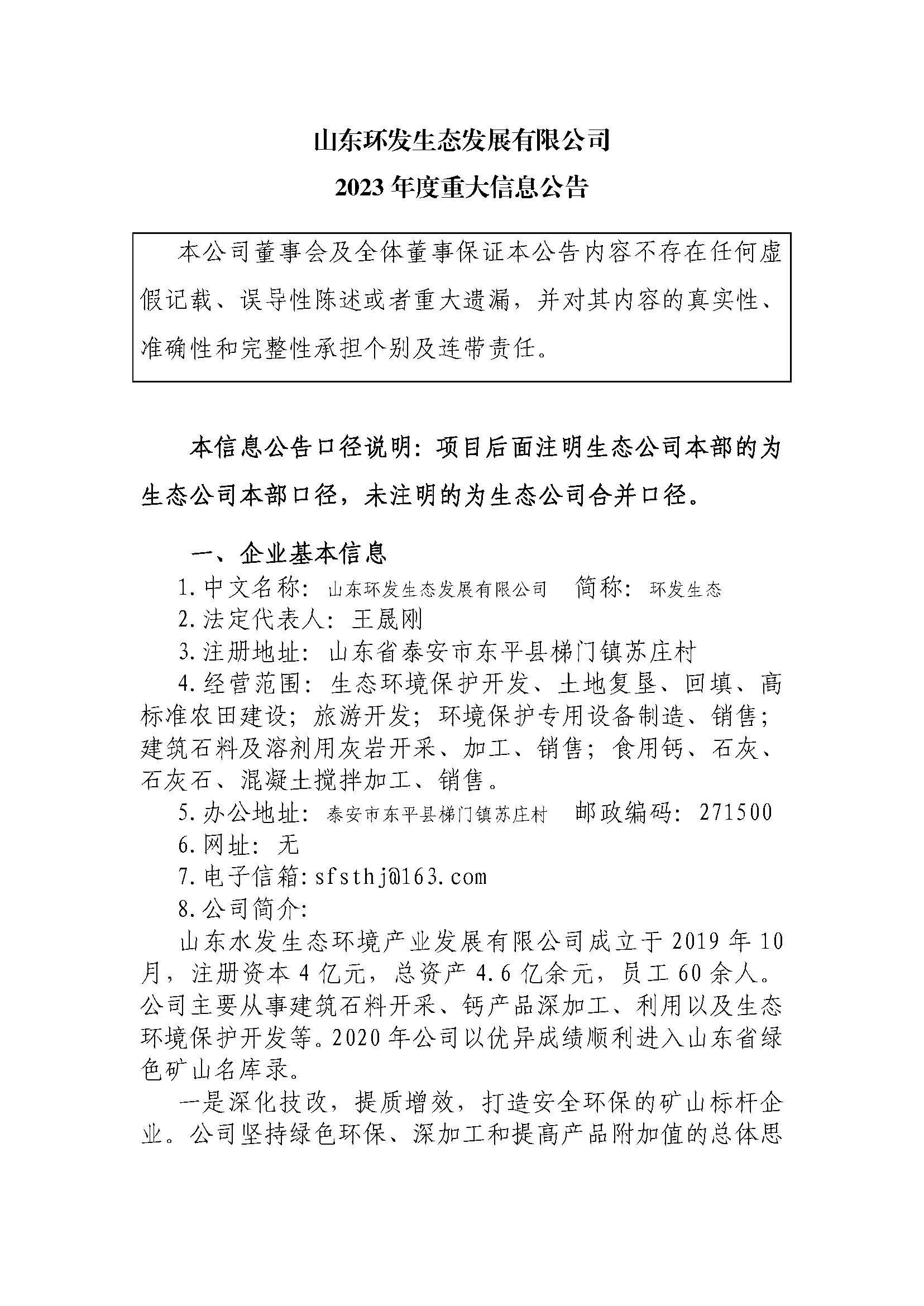 山东环发生态发展有限公司2023年度重大信息公告