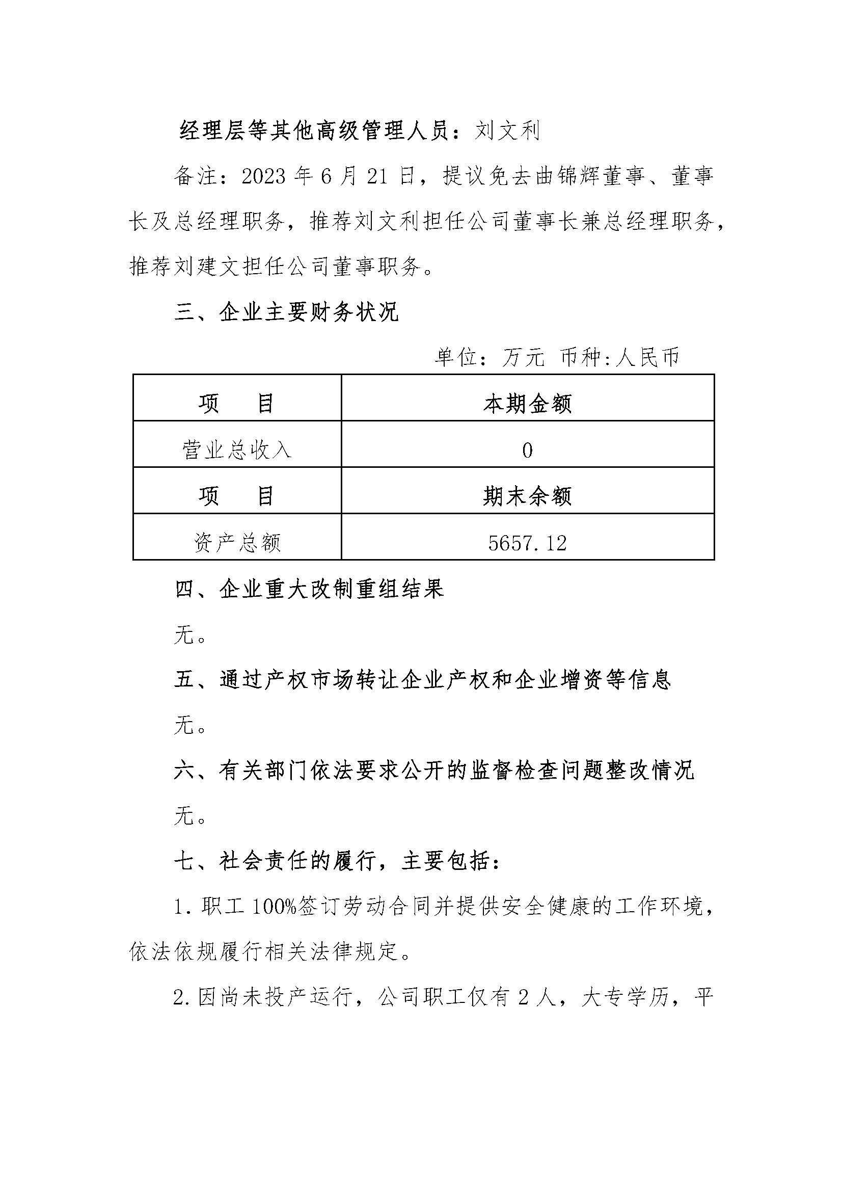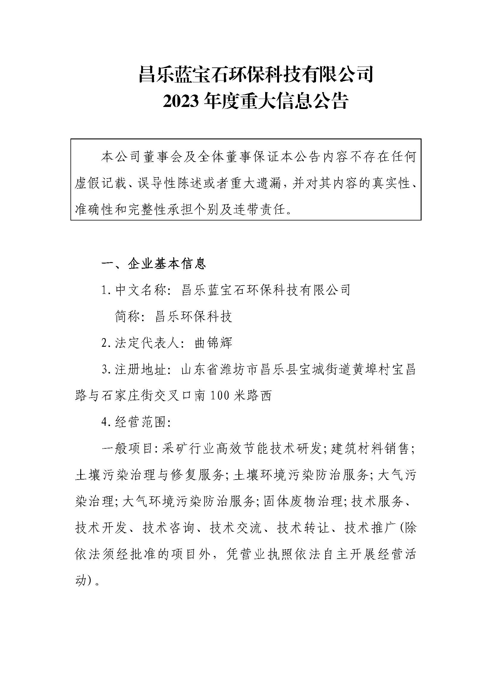 昌乐蓝宝石环保科技有限公司2023年度重大信息公告