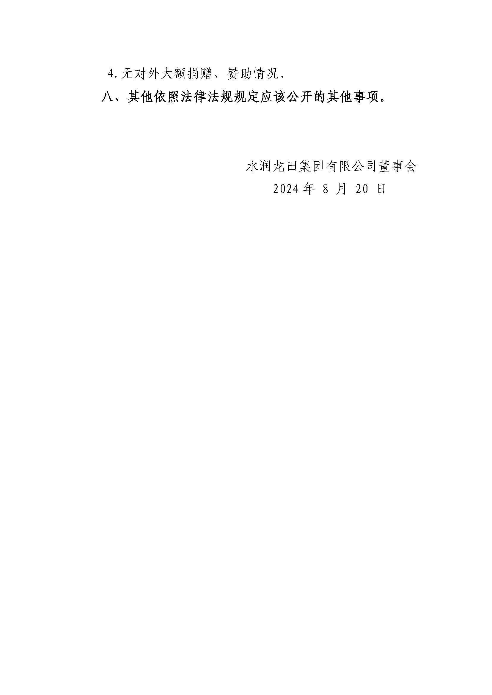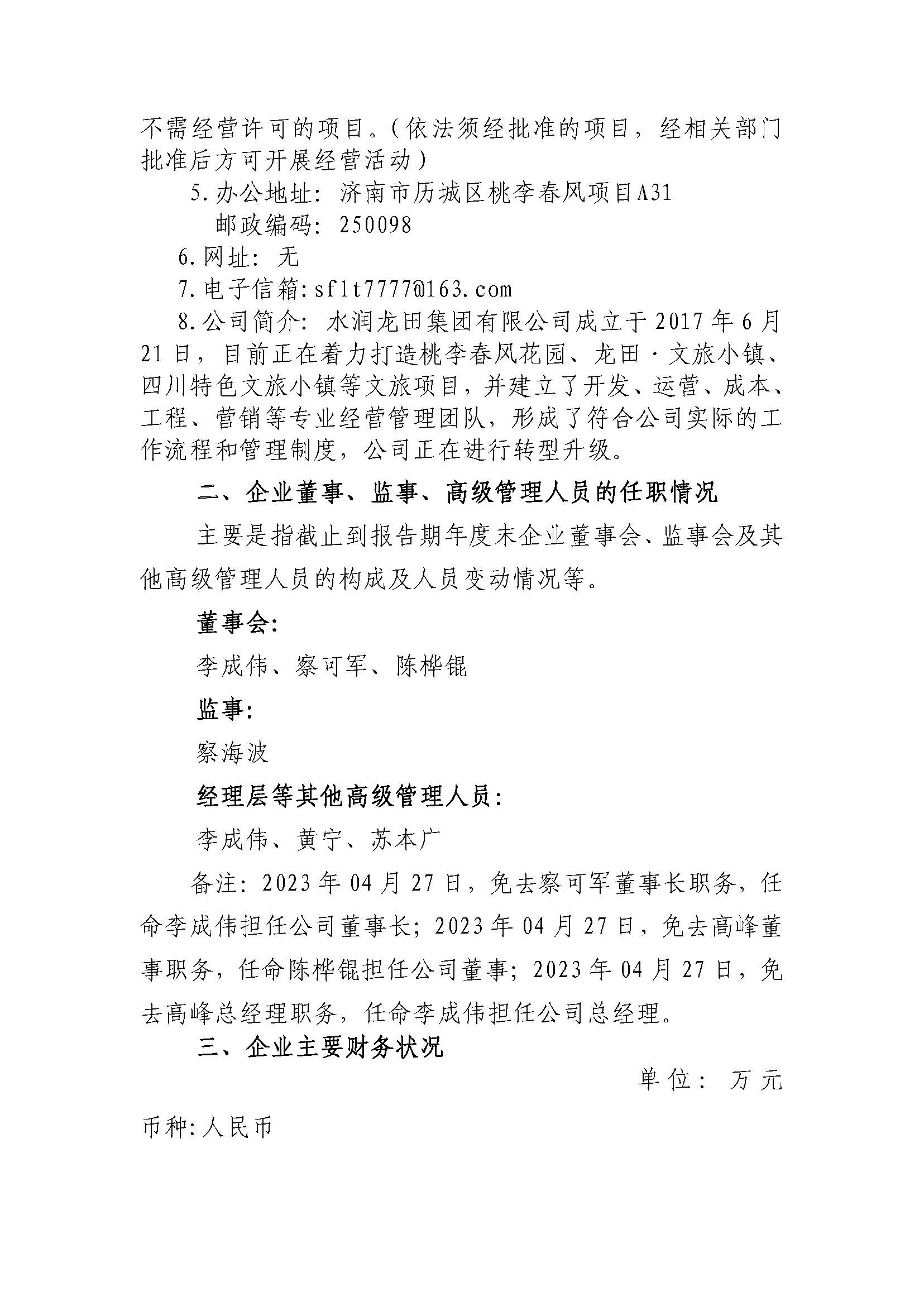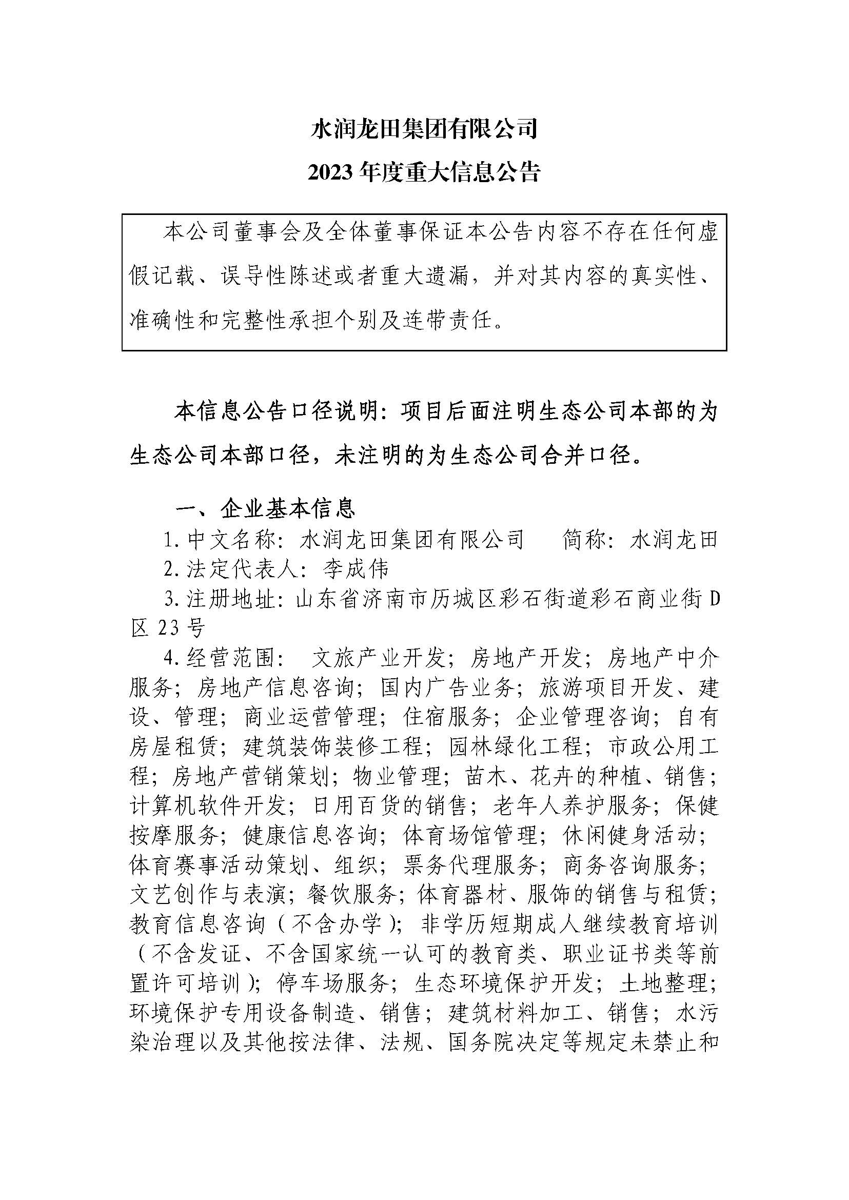 水润龙田集团有限公司2023年度重大信息公告
