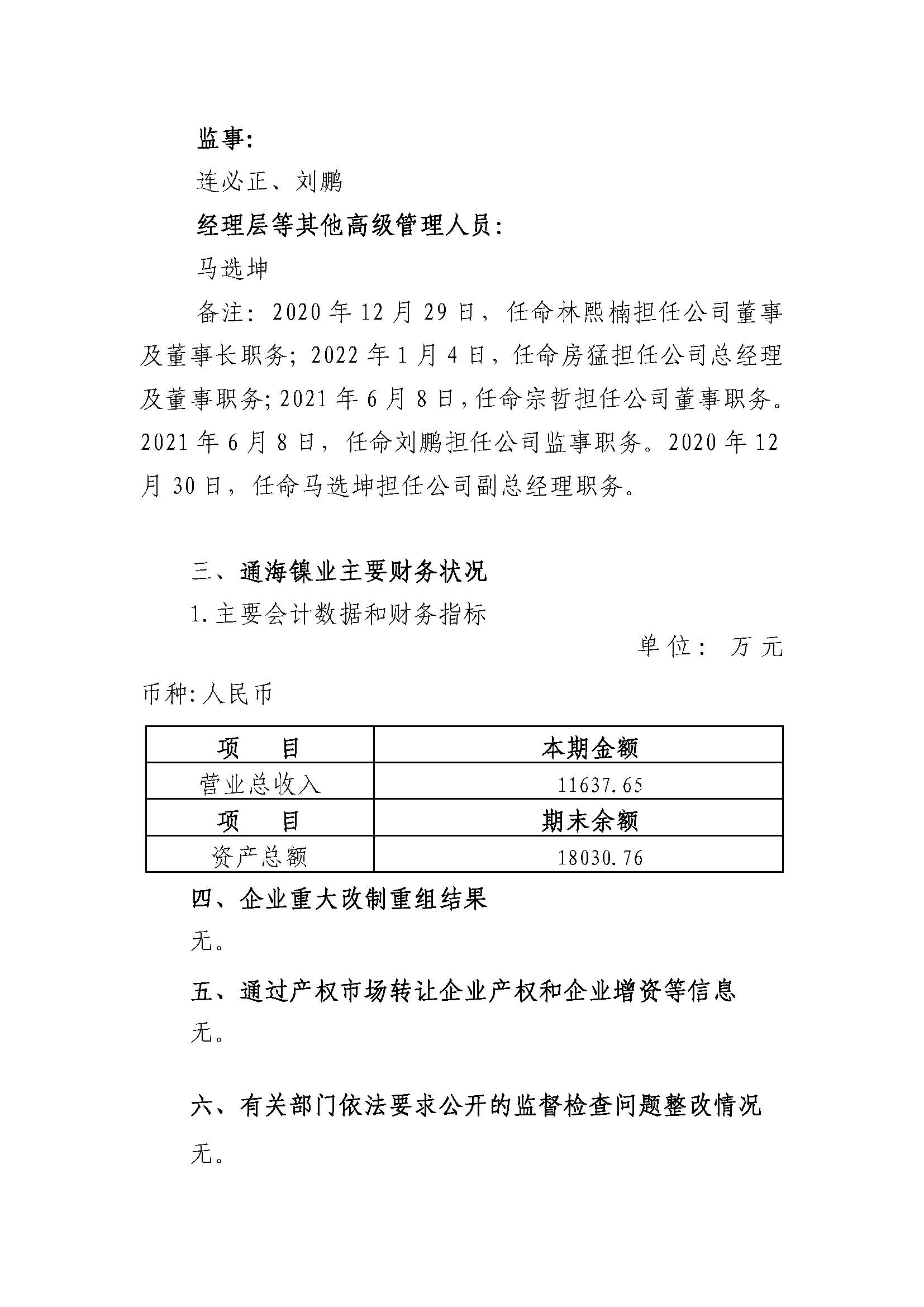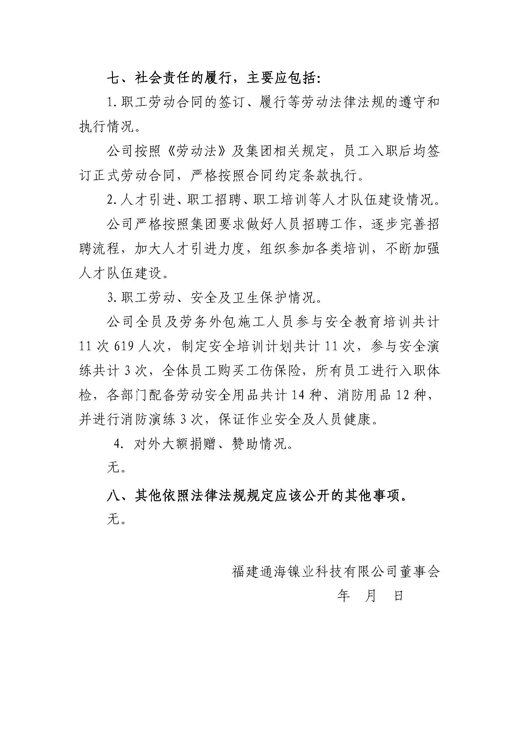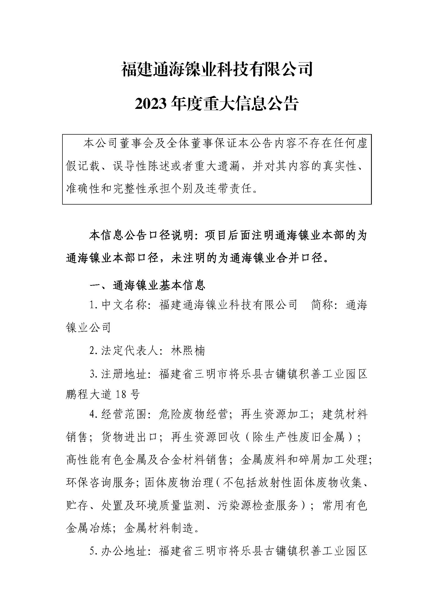 福建通海镍业科技有限公司2023年度重大信息公告