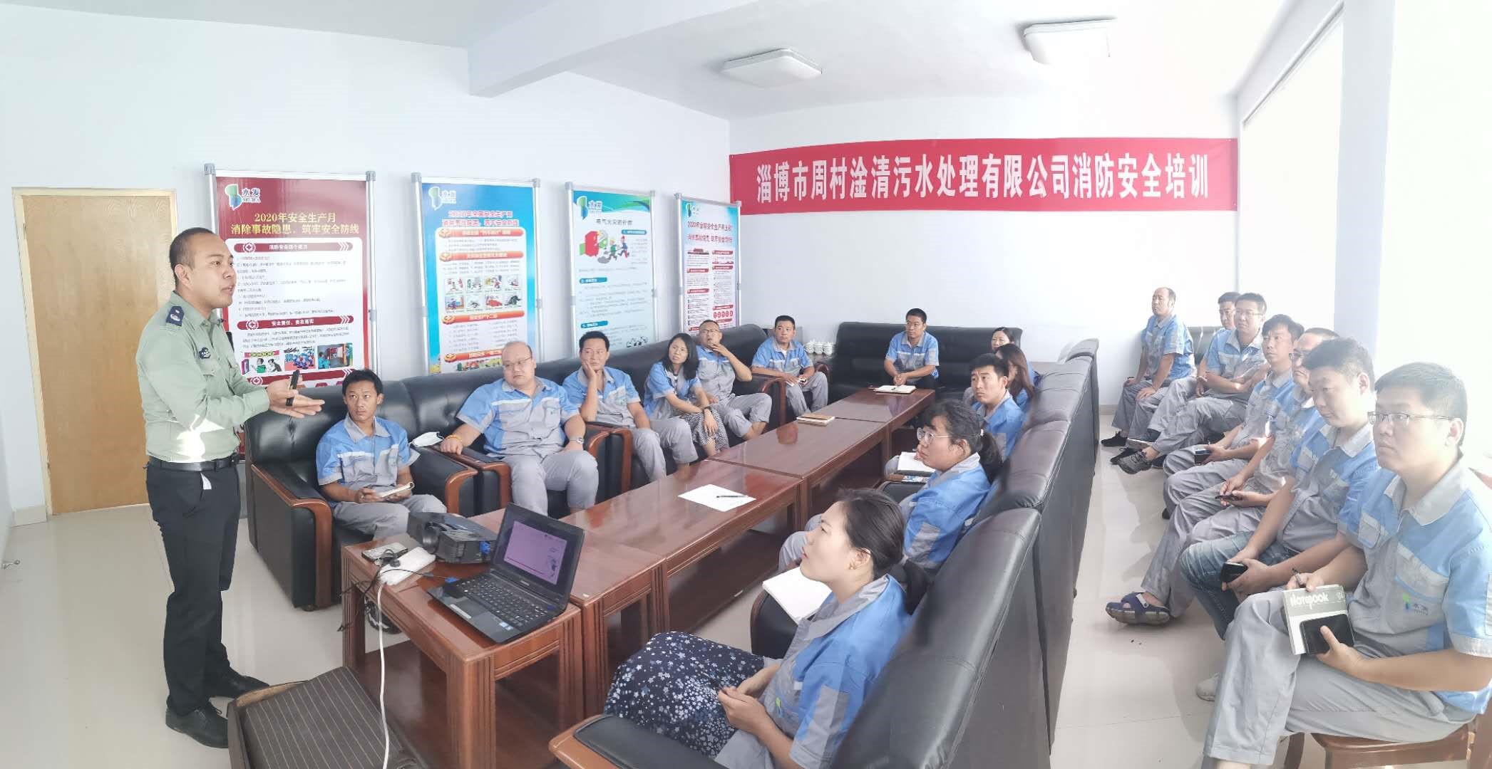 提高职工消防安全意识,强化消防安全责任, 7月24日,淄博市周村淦清污水处理有限公司(以下称“淦清污水”)开展消防安全专项培训,特邀淄博市居安防火中心王海波教官为全体职工进行消防安全知识培训讲座。