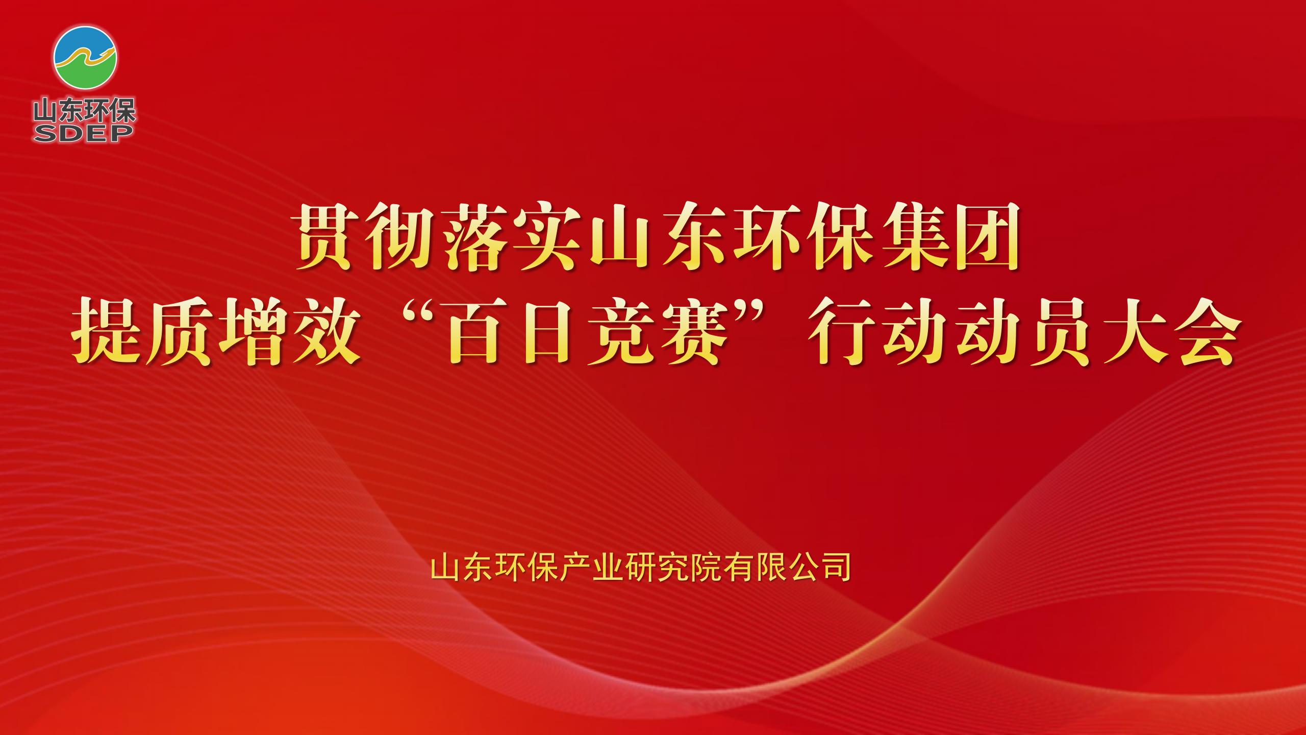 10月10日,山东环保产业研究院有限公司组织召开贯彻落实山东环保集团提质增效“百日竞赛”行动动员大会,要求院全体干部职工坚定信心、勇于开拓、团结奋进,在“百日竞赛”行动中争创佳绩。产业研究院董事长兼总经理张曦出席会议并讲话。