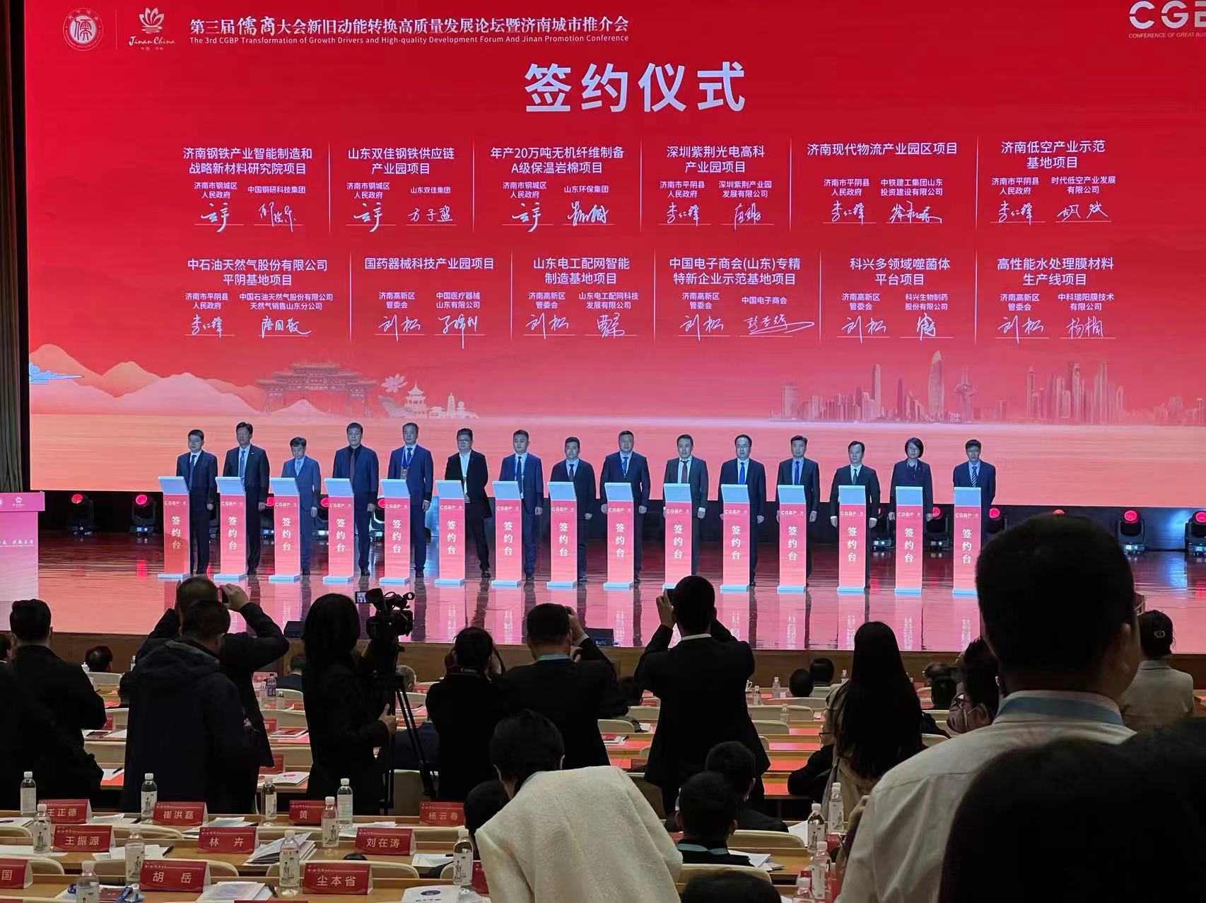 3月29日,第三届儒商大会新旧动能转换高质量发展论坛暨济南市城市推介会在济南山东大厦举行,会议包含集中签约环节,展示“双招双引”成果,济南市委副书记、市长于海田出席并致辞,济南市政府相关领导出席本次仪式。