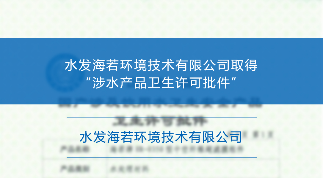 6月20日,水发海若环境技术有限公司“海若牌中空纤维超滤膜组件”4个系列的产品,取得 “山东省国产涉及饮用水卫生安全产品卫生许可批件”。