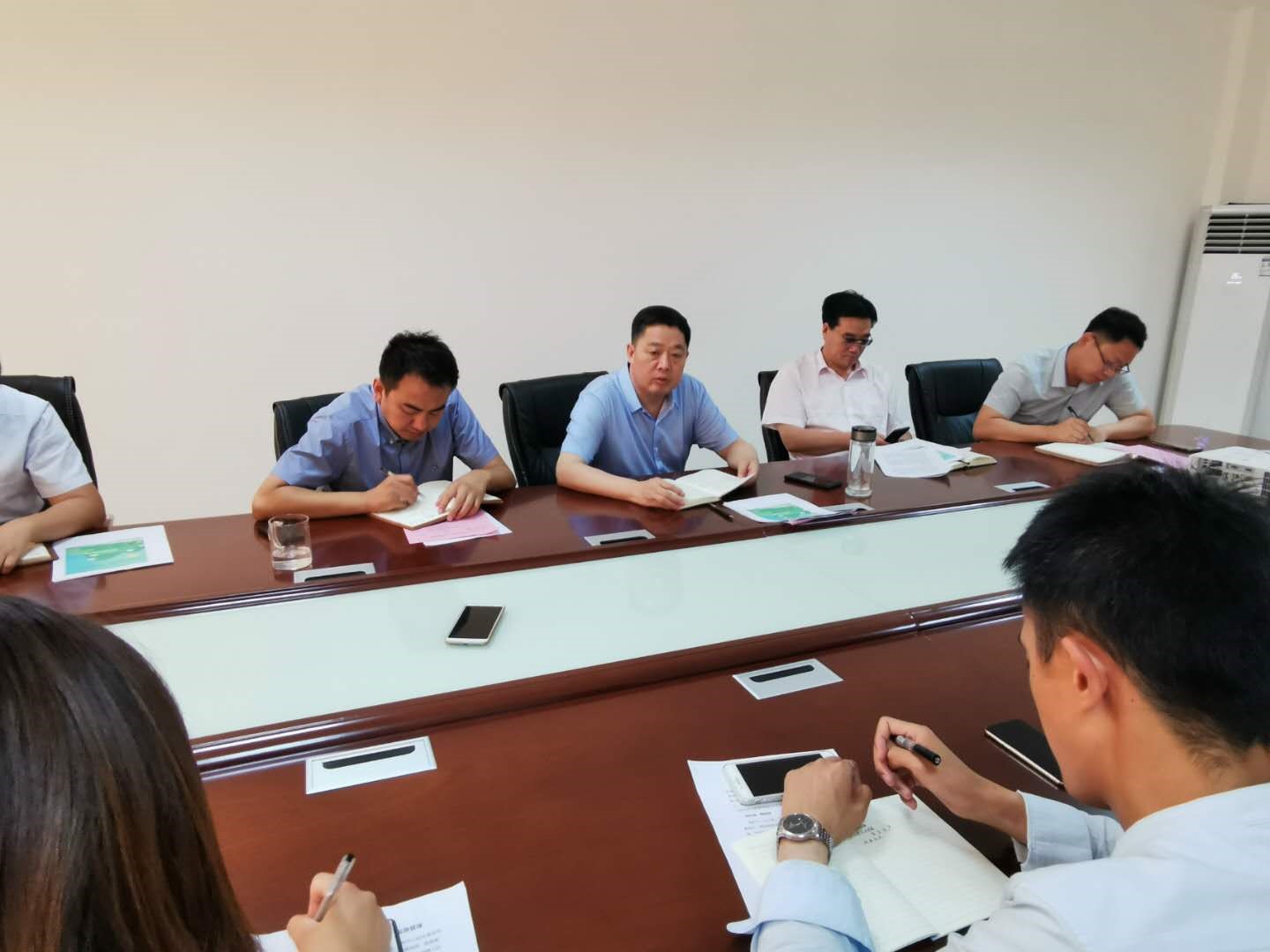 6月27日,山东滨美环境科技有限公司董事长李柏林、技术总工谢兴鹏一行近10人到访昌乐水务公司,昌乐水务公司董事长王俊忠、副总经理冀忠贞及相关生产技术负责人陪同参观了综合池生化系统